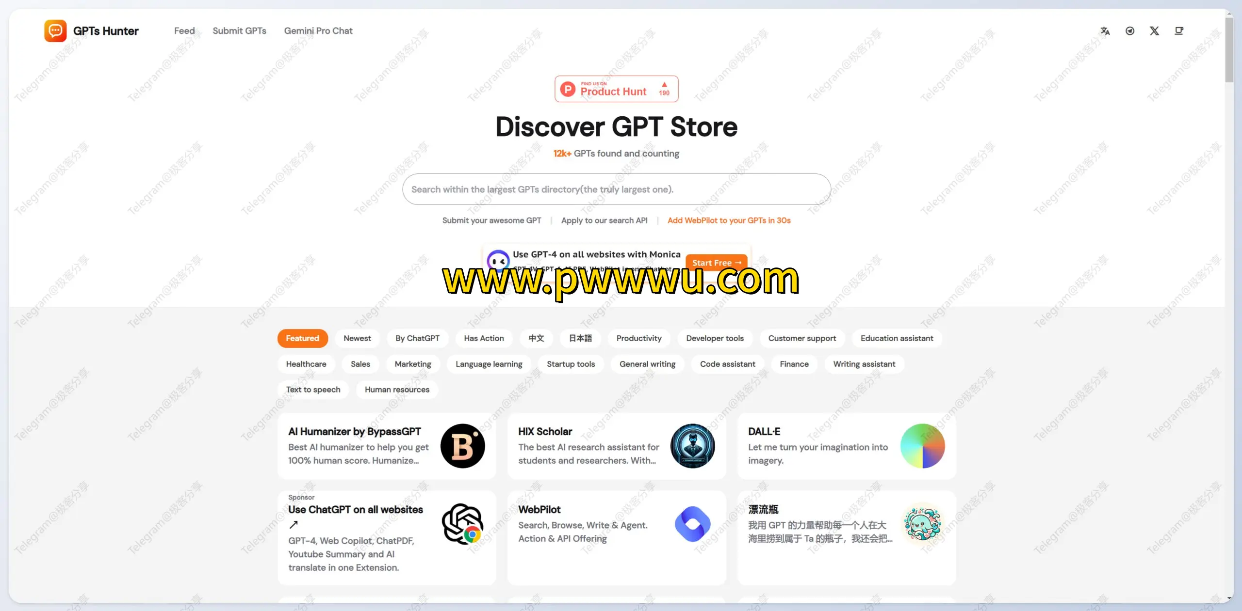 GPTsHunter:一站式GPT应用导航站