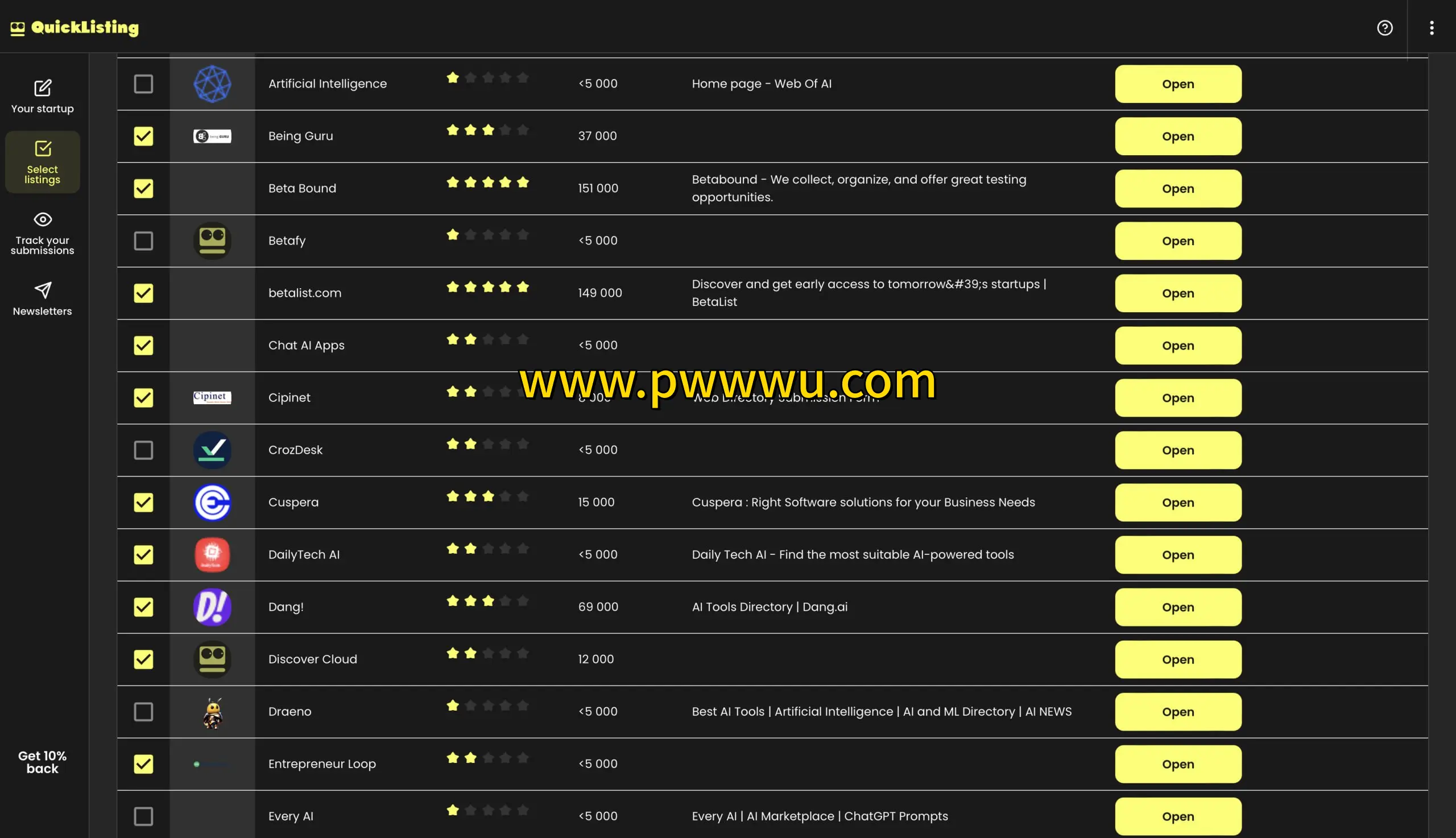 通过这项服务,您只需输入产品链接,系统便会协助您将产品信息呈现在超过150个人工智能展示平台上。这些平台的潜在用户群体规模超过千万,预计能为创业者节省超过40小时的手动提交时间。