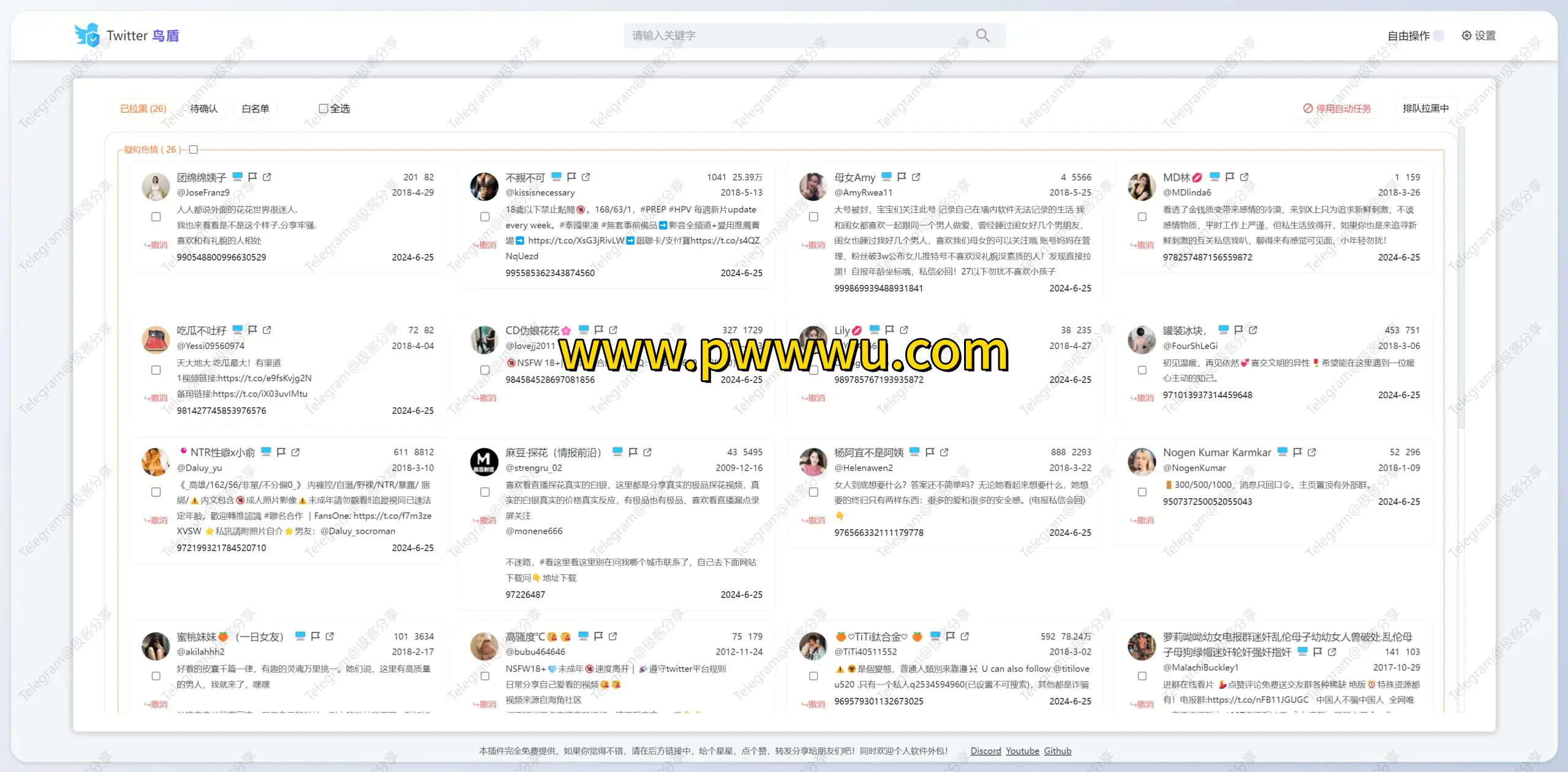 推特鸟盾是一款专为净化社交平台环境而设计的浏览器扩展工具,能够有效过滤平台中的不良账号。该工具可自动识别并屏蔽涉及色情内容、欺诈行为等恶意用户,同时集成了一系列便捷功能,包括自动展开次级推文列表、内置搜索辅助工具、多媒体内容下载支持以及个人化用户标注系统。