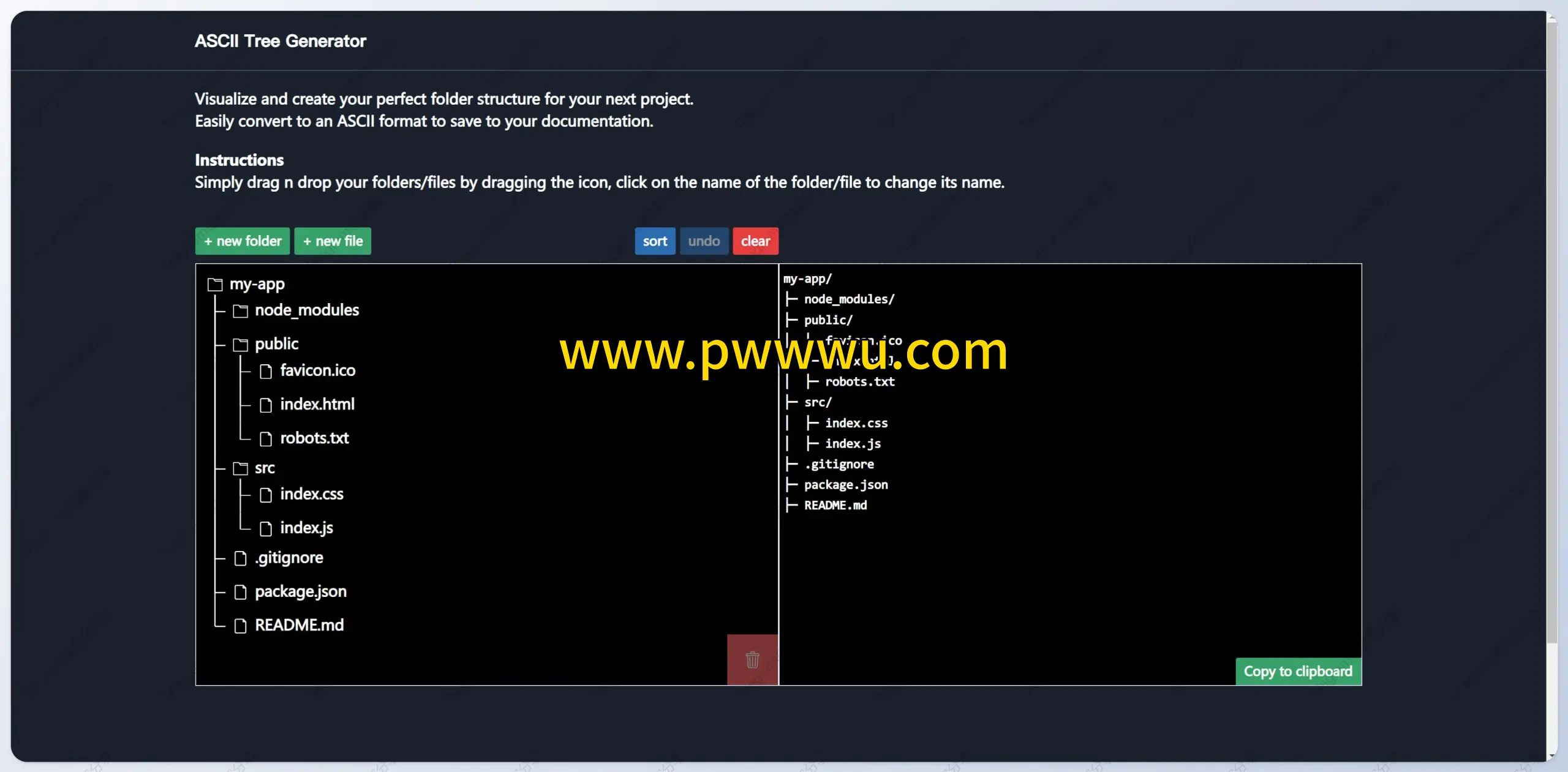 在线工具与生成服务 利用拖放功能,轻松设计项目文件夹布局,并转化为ASCII文本样式,便于存档与整理。 欢迎内容提交,支持文章内容改写。 分享地址: https://ascii-tree-generator.com/