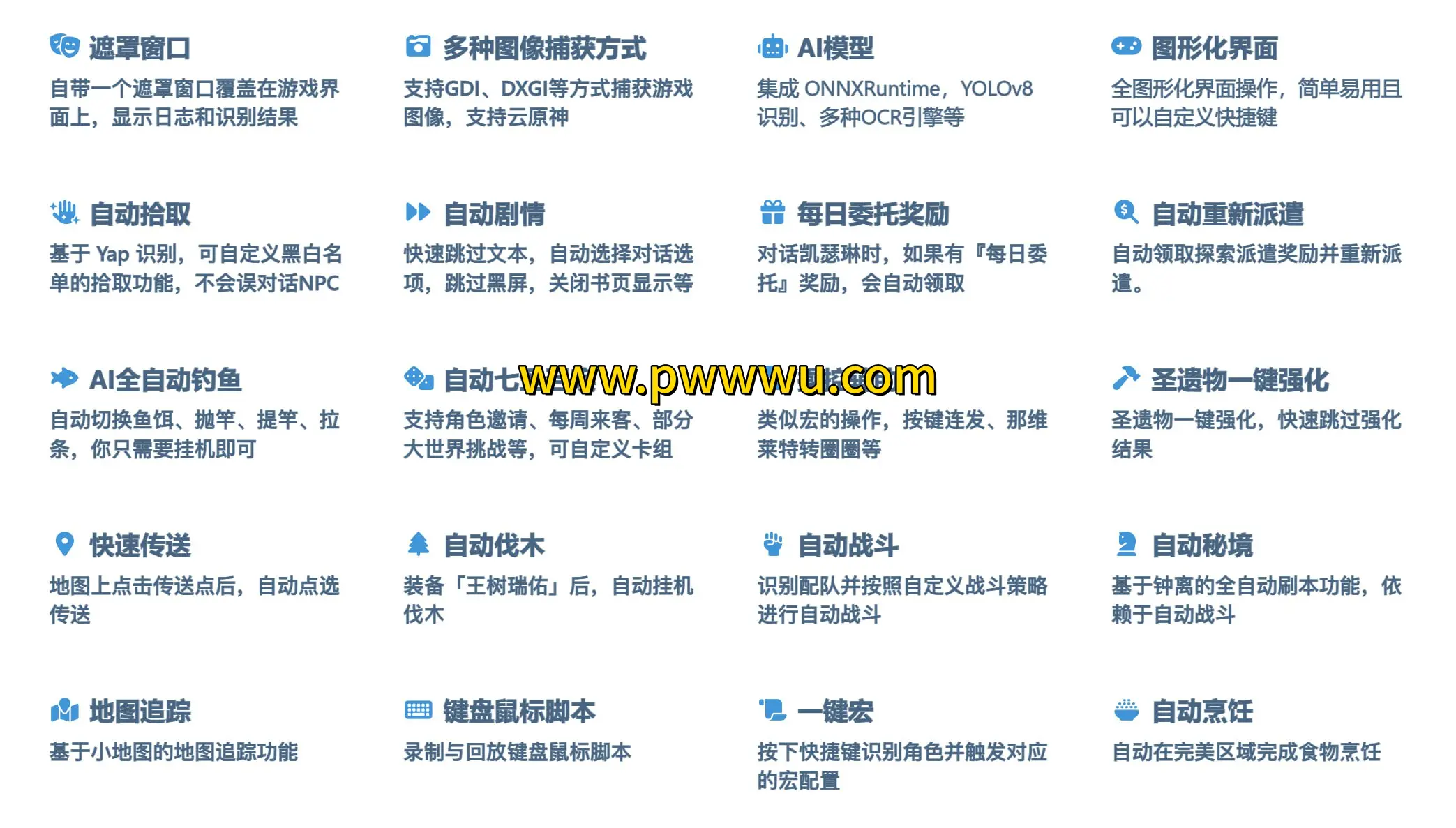 这款工具堪称目前最便捷实用的原神辅助程序,集成了丰富的自动化功能。它能够实现自动采集物资、完成主线剧情、处理角色邀约、执行钓鱼操作以及自动化烹饪等多项便利功能。