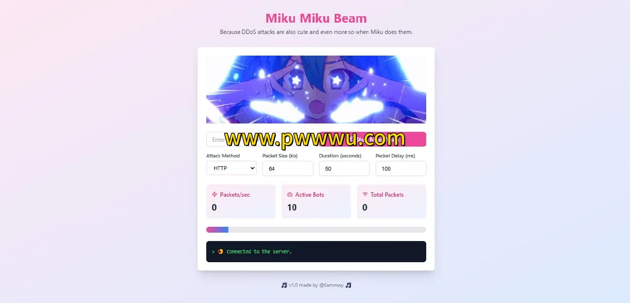 MikuMikuBeam是一款免费开源的网络压力测试工具,用户只需预先配置代理列表和用户代理列表文件即可启动测试流程。该工具提供实时攻击可视化界面,并采用多工作线程架构处理并发请求,有效提升测试效率。