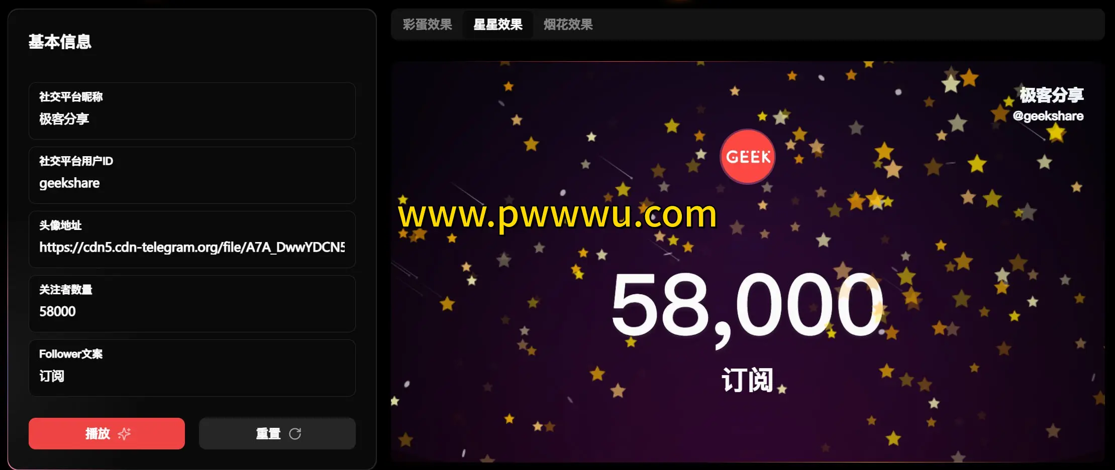 这款在线工具能够帮助用户设计独特的社交媒体成长轨迹动画。您可以将生成的作品作为个人纪念,见证自己的进步历程。