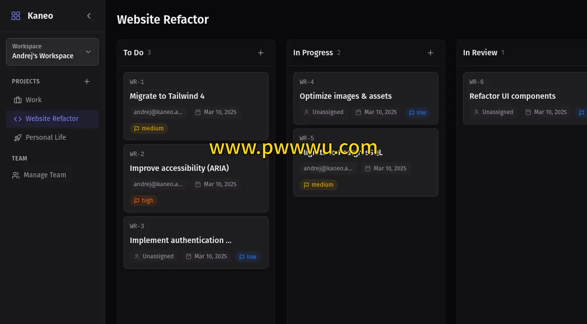 Kaneo是一款开源的项目管理平台,致力于实现多人协作的简单高效。该平台尤其适合小型团队,能够帮助成员更好地规划任务、跟踪进度并促进合作。
