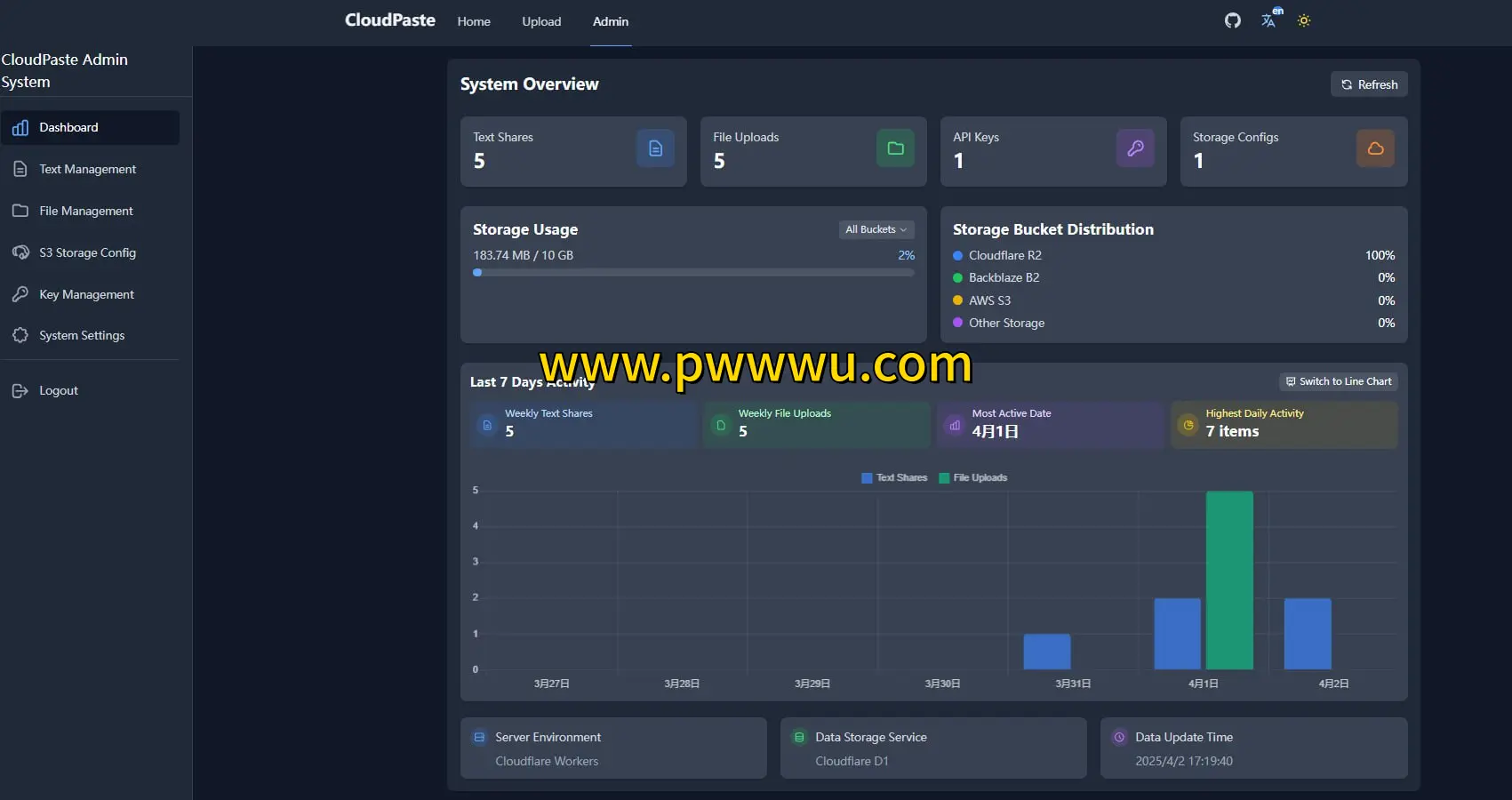 CloudPaste是一款依托Cloudflare技术构建的在线数据共享平台,支持文本与文件的多场景传输需求。