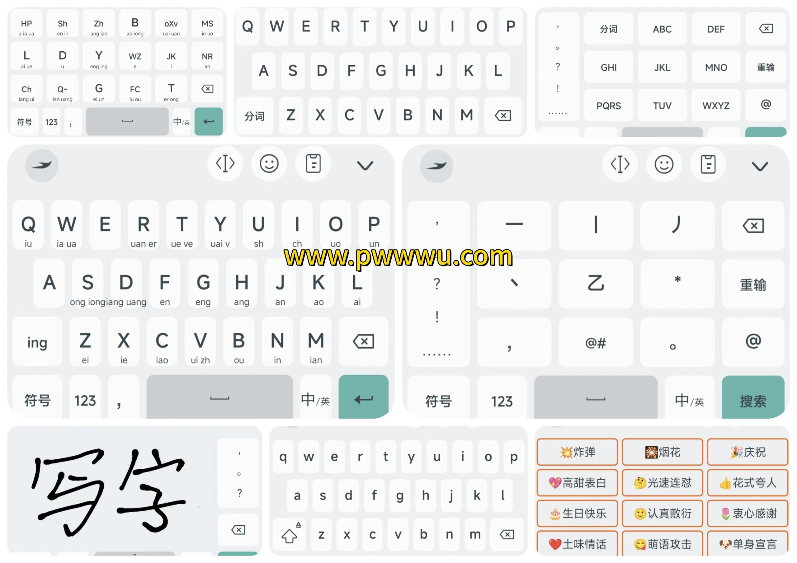 - 提供个性化键盘布局:悬浮模式、单手模式、数字独立行