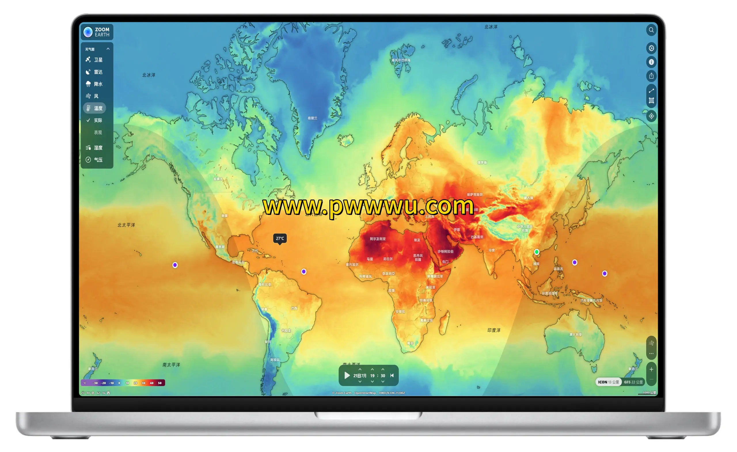 该工具能够实时展示世界各地降雨分布、风速变化、温度数值、湿度水平、大气压强及台风路径等综合气象数据。