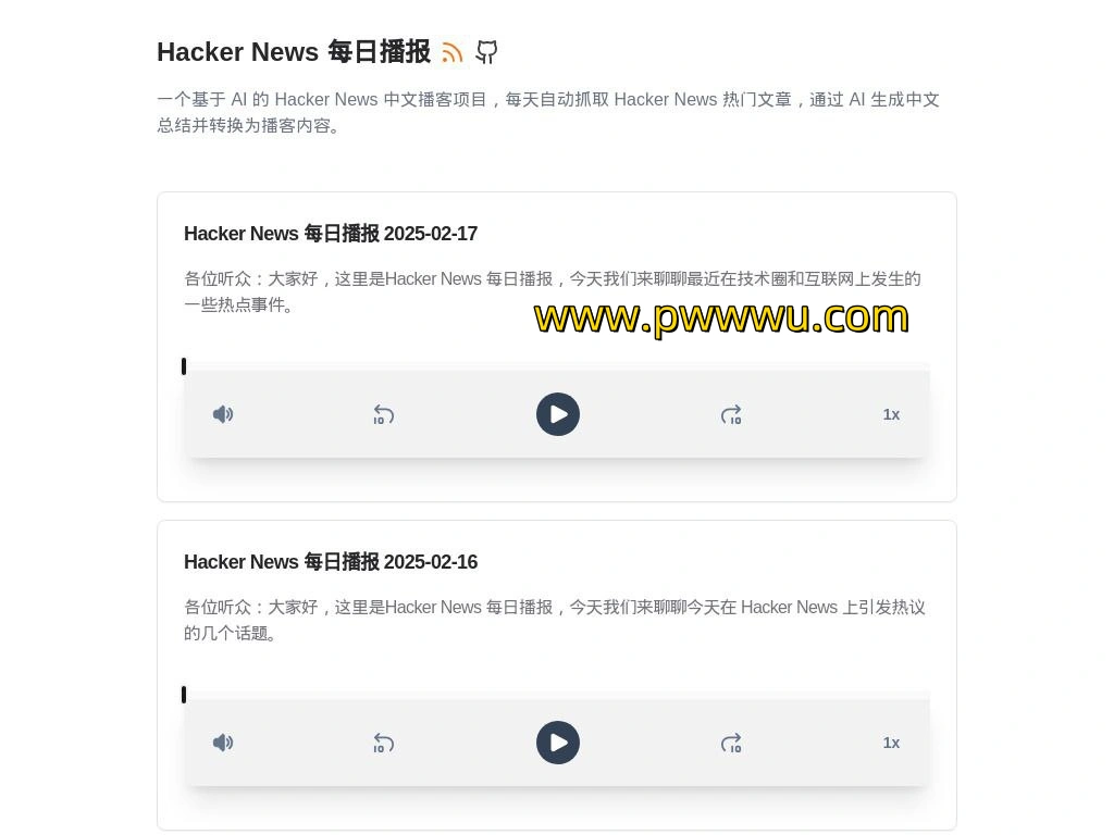 项目基于先进技术打造,专注于每日自动化收集 Hacker News 平台的热门内容,并借助智能系统生成中文语音播报与文本摘要,让用户以更轻松的方式获取全球科技动态。