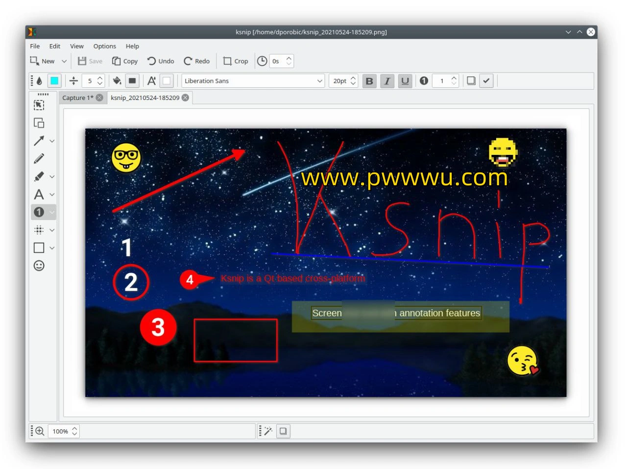 Ksnip 是一款功能强大的截图与图像标注软件,支持跨平台使用。用户可通过它截取指定区域、窗口或整个屏幕,并支持延迟截图、鼠标指针捕捉以及重复上一次截图区域等实用功能。