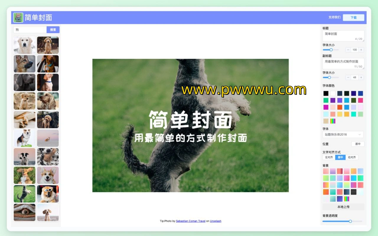 平台内置了五种图片资源,可以根据需要调整封面比例、标题内容、字体大小、背景色彩等多项参数。既支持在线直接操作,也提供插件下载安装。